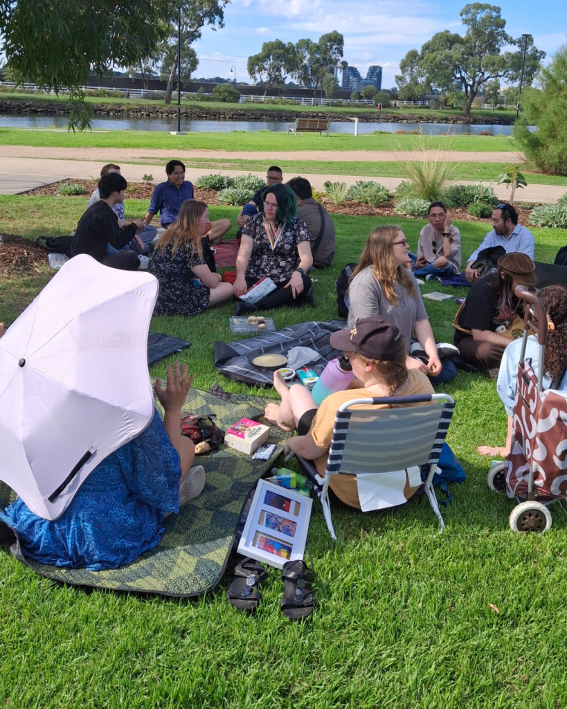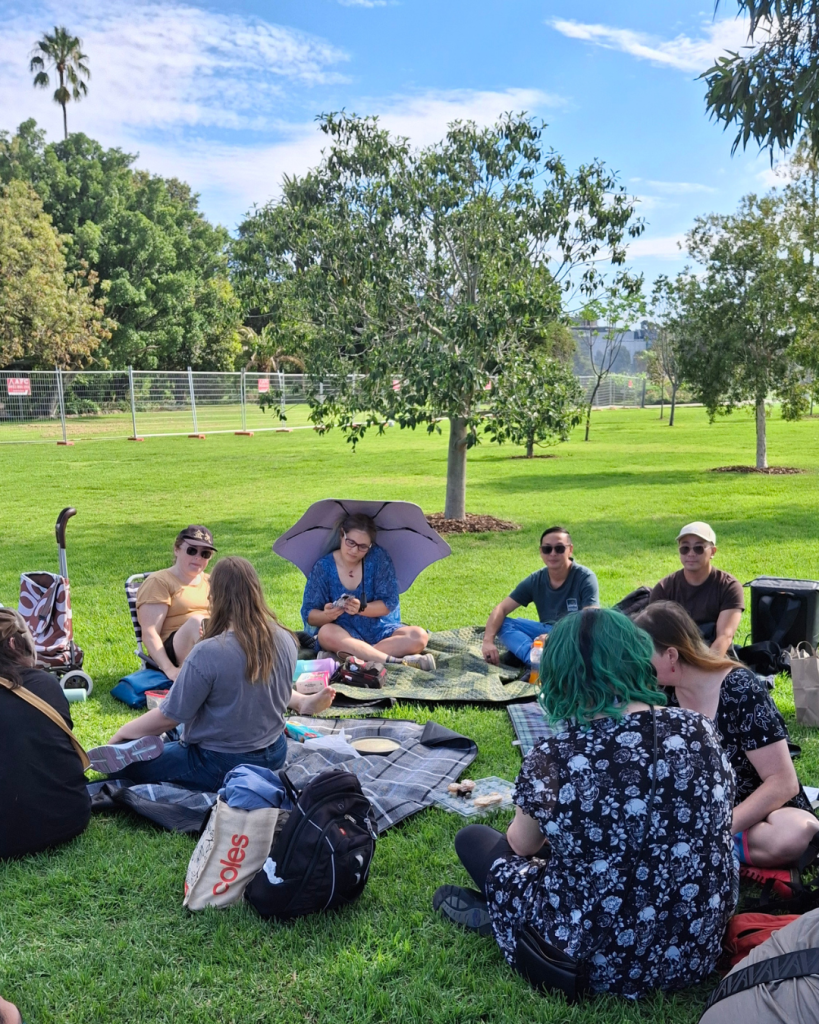 The main event was Easter Sunday. While open to everyone, hosts Ben Williams and Hamish Drummond wanted to specifically provide something for queer folks who are also neurodivergent. The result: a wholesome queer & neurodiverse picnic in Footscray Park. The weather was perfect, and it was so lovely to meet everybody who came along. Food, stories, and mutual understanding were shared between the 30 or so folks who attended.